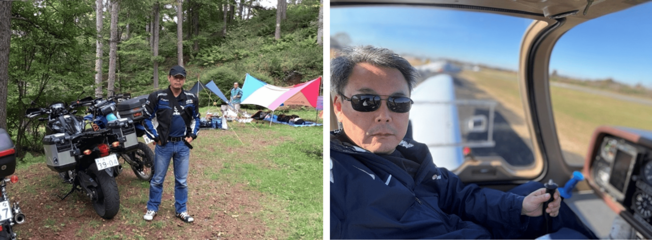 時間があれば運動している妻の姿に感化され、数年前からジム通いを始めました。週3回、1回あたり1-2時間程度かけて体をメンテナンスしていますが、体の調子が良いのが実感できるがいいですね。近所のお父さん方とのバイクキャンプや、3年前に始めたフライト訓練も楽しんでいます。