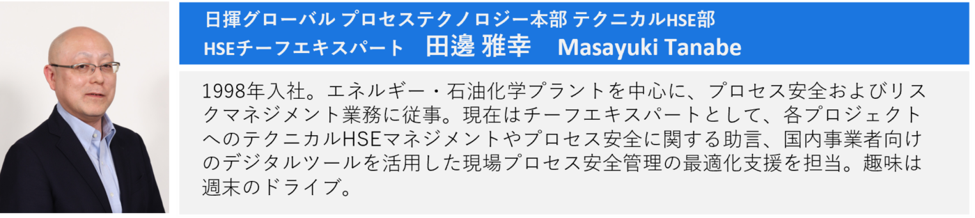海外のプラントの設計・調達・建設を事業の柱とする日揮グローバルでは、幅広い分野の技術エキスパート*が事業の根幹を支えています。彼らの持つさまざまな専門技術はプラント建設だけでなく、サステナブルな社会を実現するうえでも欠かせないものです。そこでサステナビリティハブでは、チーフエンジニア**の方々に専門技術や最新トピックなどを解説してもらうインタビュー記事を連載しています。今回の記事は、第6弾となる「HSE(安全衛生)」のチーフエンジニアのインタビュー後編です。是非ご覧ください。(インタビュアー:サステナビリティハブ編集部)
